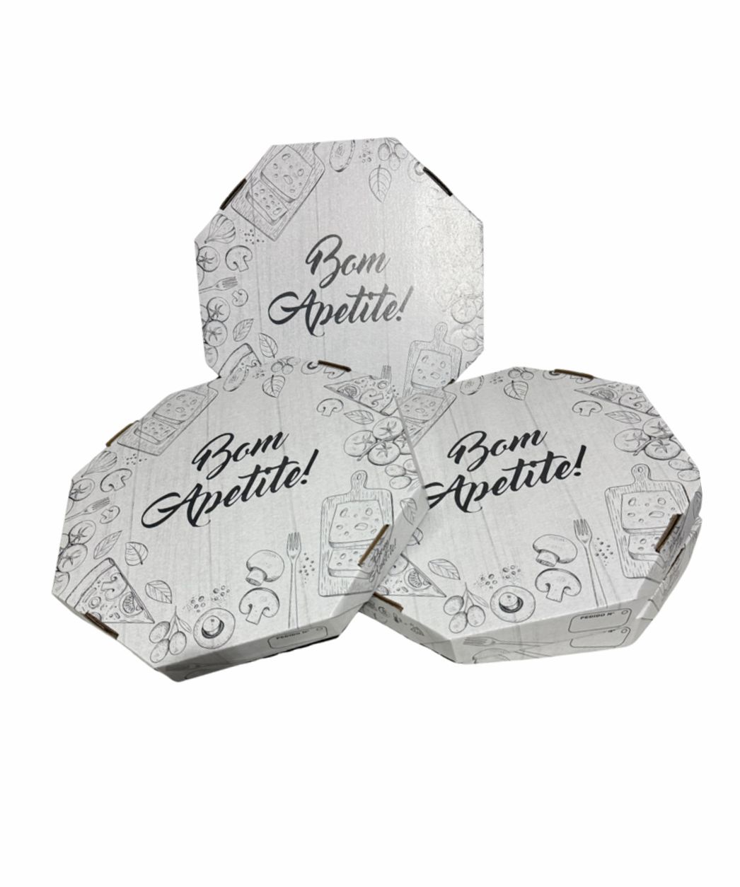 Caixas de 35cm, fornecidas em pacotes de 25 unidades. Embalagem robusta, perfeita para o transporte de pizzas, garantindo que o alimento chegue ao destino com total segurança.