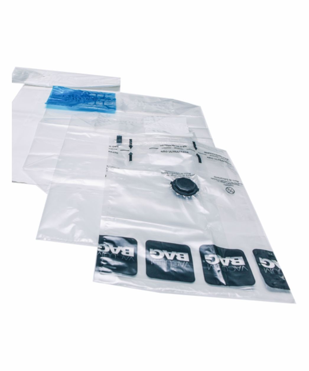 Vários modelos e tamanhos. São reutilizáveis e resistentes à tração. Possuem fechamento automático da válvula por compressão, reduzindo o espaço de armazenagem.