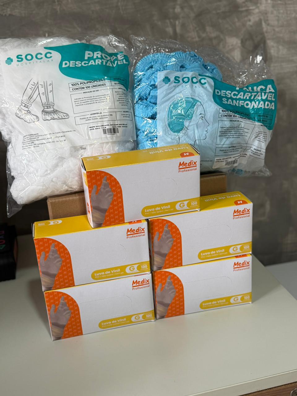 Toucas em diversas cores e pacotes com 100 unidades. Essenciais para impedir a queda de cabelos, garantindo alta limpeza em áreas controladas.