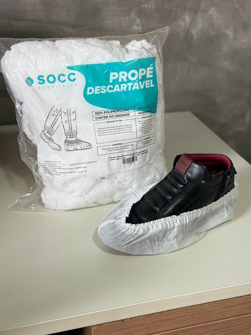 Sapatilha descartável utilizada para proteger os calçados em ambientes que exigem controle de contaminação.